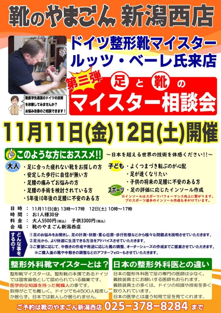 11月11日と12日に新潟西店で開催されましたドイツ整形外科靴マイスター”ルッツ・ベーレ氏”による『足と靴のマイスター相談会』は大盛況のうちに終了いたしました。